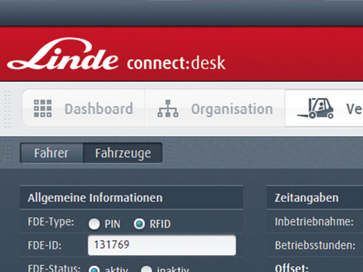 Linde Connected Solutions, based on excellent software platform and data collector hardware, helps you realize the lean connection between manager and fleet. Linde Connected Solutions, based on logistics big data, explores operating data of fleet to provide detailed basis and correct guidance for greater logistics efficiency, guaranteed safety and cost reduction. Fleet data includes a lot of state data and operating efficiency data. By re-connection, you can obtain such data at your premise, to control the real-time logistics operation at any time.